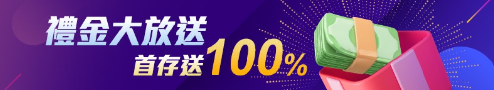 新會員首次存款贈送100%禮金,上限1000