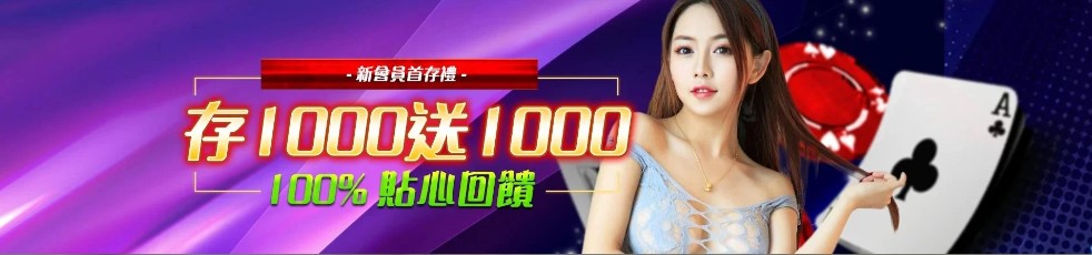 新會員首次存款贈送100%禮金,娛樂城1000送1000,上限1000元。